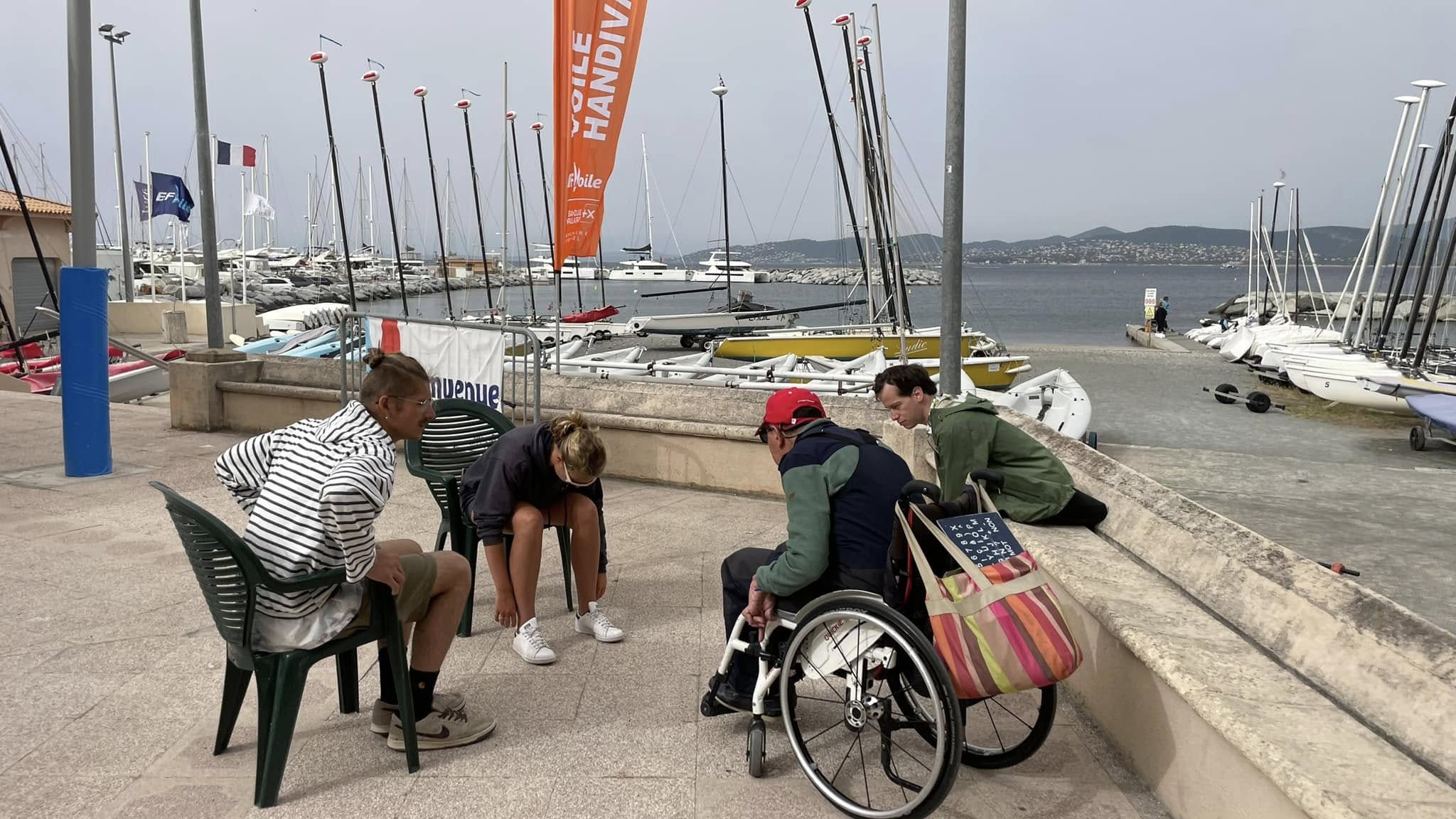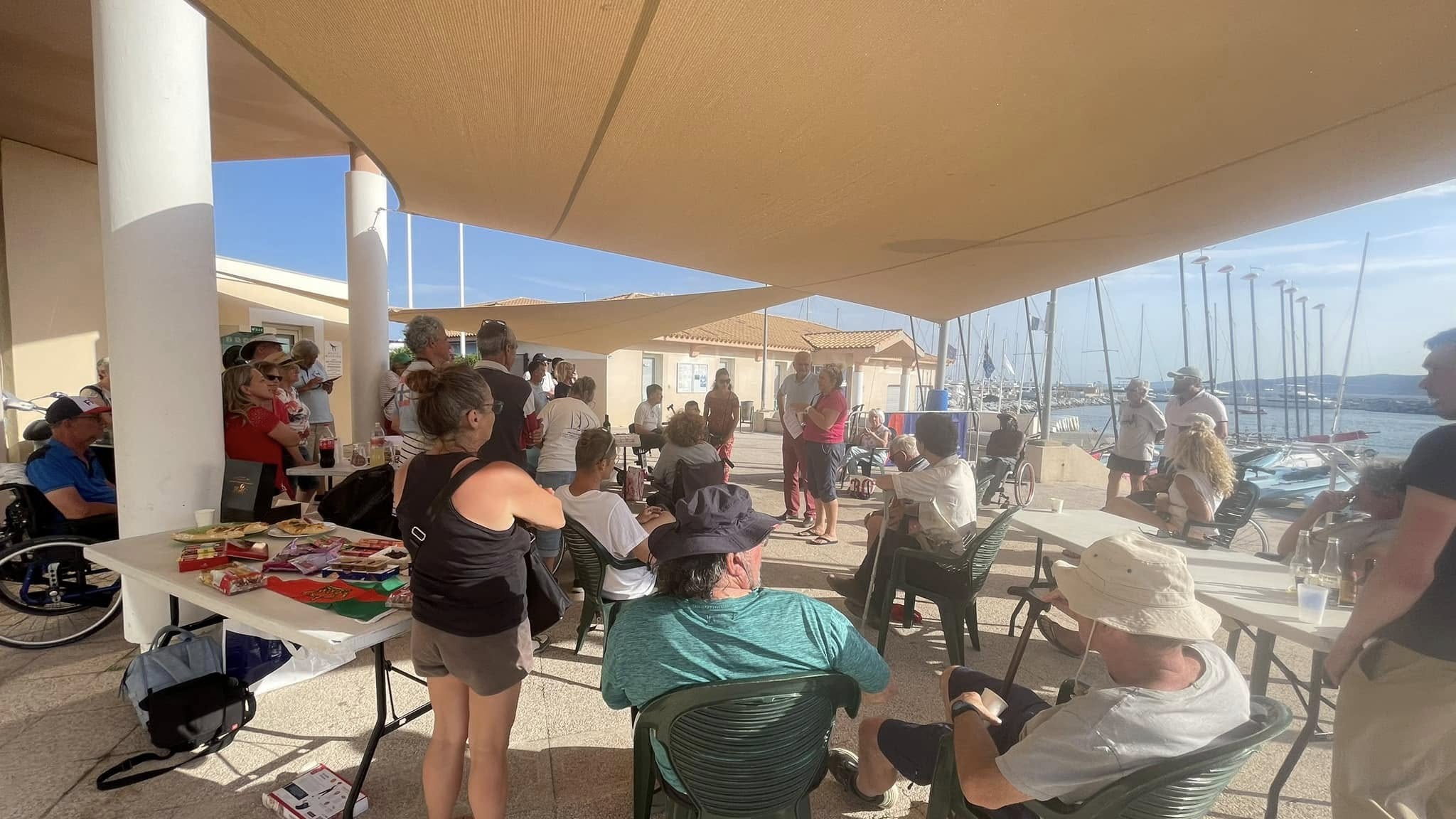 les équipages de Bretagne de La Rochelle, de Bruxelles ont rejoint Saint Club Nautique Saint Raphaël après un long périple. Tous s’activent, pour les mises à l’eau, préparation des Neo495, malheureusement le vent de sud établie à 20/26 noeuds avec une houle significative n’a pas permis d’aller sur l’eau. La journée se termine par l’apéro de bienvenu, les échanges des spécialités, le slam de Vincent et pour certains un tour sur la plage.